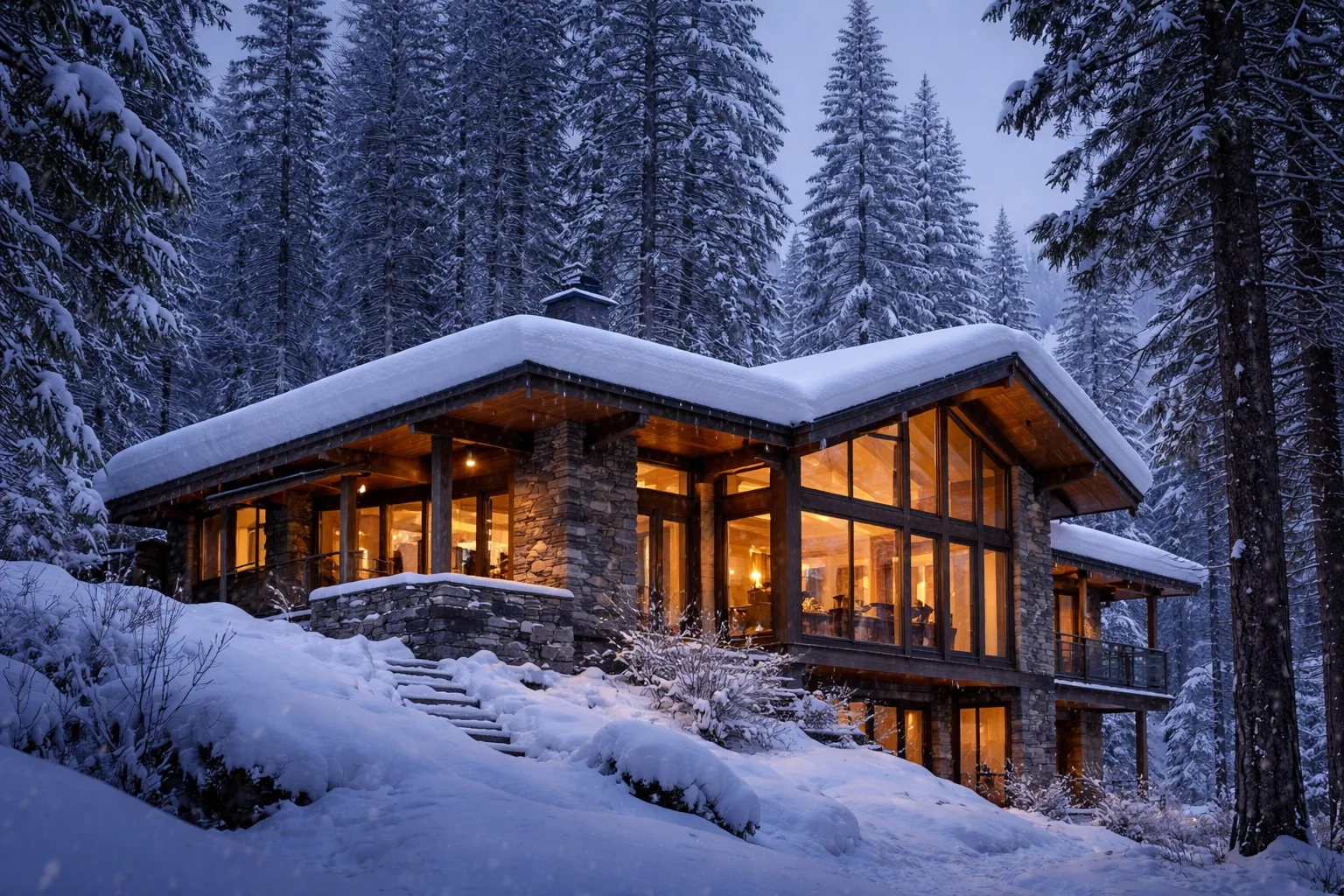 Contemporary mountain architecture has evolved. Today, we can achieve clean, modern lines while still engineering for the realities of winter. The key lies in understanding how snow behaves and designing roof systems accordingly.